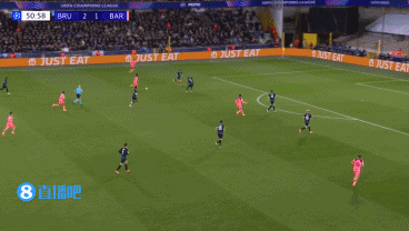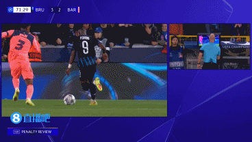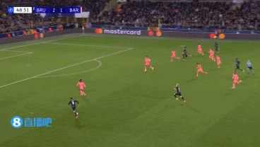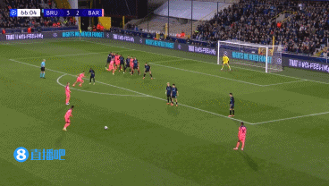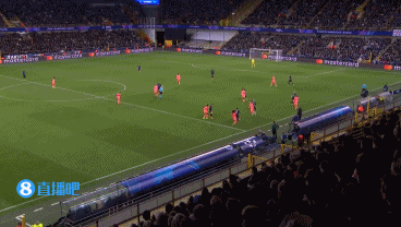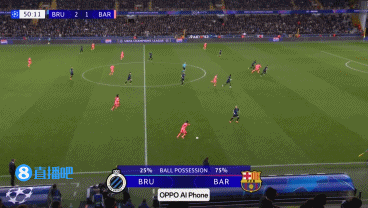 上半场伤停补时2分钟,半场结束,巴萨暂1-2布鲁日。